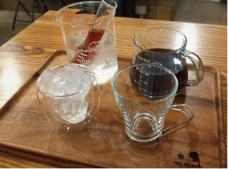 ホットコーヒー提供時に氷入りカップを同時提供